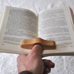 Practical accessory to facilitate reading books with one hand. Made of natural chestnut wood.
