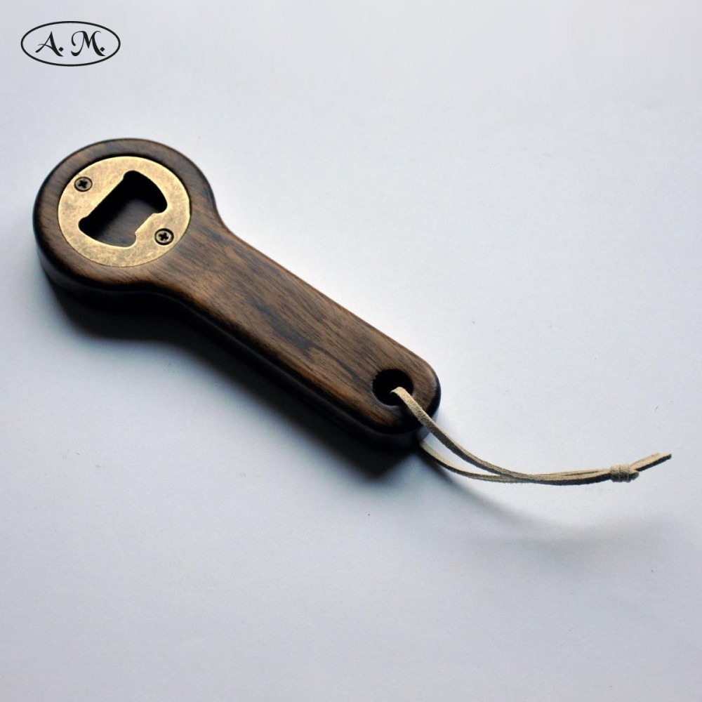 Handcrafted in natural ovengkol wood, and with a varnished finish. With a metal plate designed specifically for bottle caps, and a synthetic suede cord to hang it anywhere.