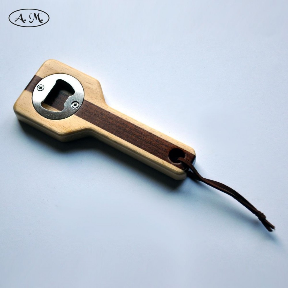 Practical handheld bottle opener to remove the cap from the bottles. Made of natural koto and sapele wood.