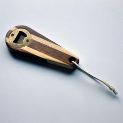 Practical handheld bottle opener to remove the cap from the bottles. Made of natural sapele and koto wood.