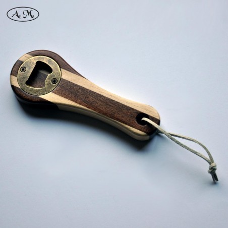Practical handheld bottle opener to remove the cap from the bottles. Made of natural sapele and koto wood.