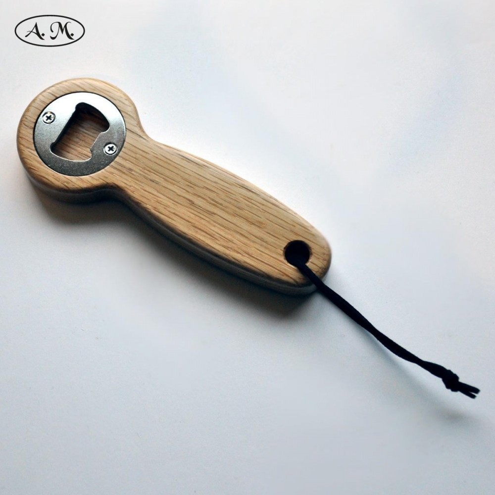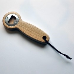 Practical handheld bottle opener to remove the cap from the bottles. Made of natural oak wood.