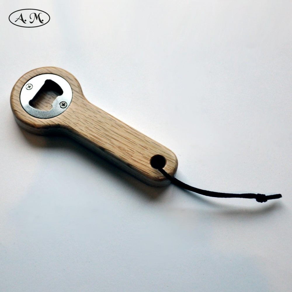 Practical handheld bottle opener to remove the cap from the bottles. Made of natural oak wood.