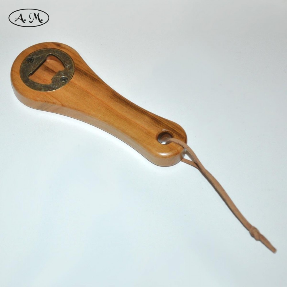 Practical handheld bottle opener to remove the cap from the bottles. Made of natural cherry wood.