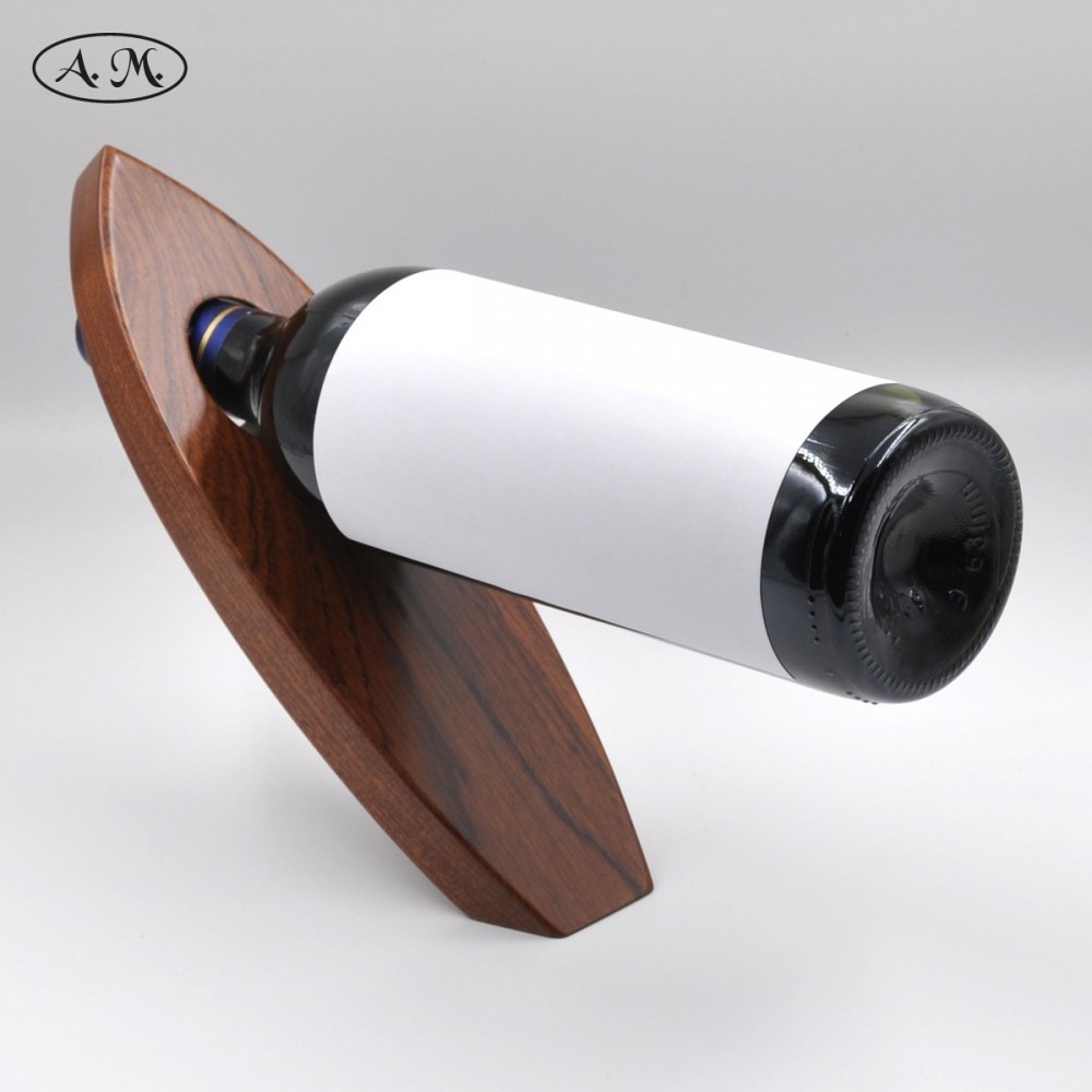 By carefully placing the wine bottle on the stand, it will balance fairly stably on any flat surface. Compatible with the vast majority of 75cl wine bottles.