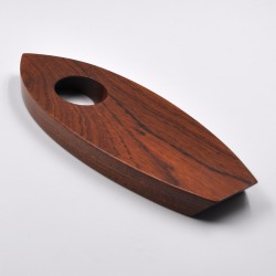 Handmade bottle holder made of natural sapele wood and with capacity for a bottle of wine. Design that imitates a surfboard. Varnished finish.