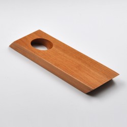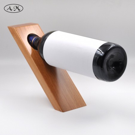 Handmade bottle holder made of natural cherry wood and with capacity for a bottle of wine. Rectangular design. Varnished finish.