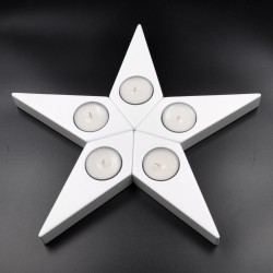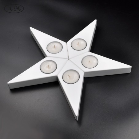 Handmade candle holder manufactured with fiber board. Design of a 5 pointed star. Lacquered finish.