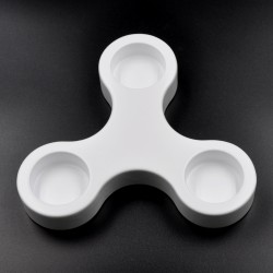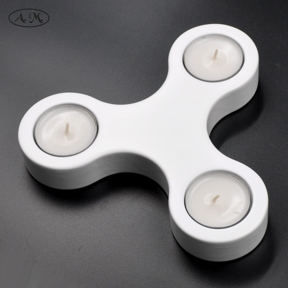 Candle holder with a design of a spinner. Made of fiber board, with lacquered finish.