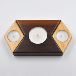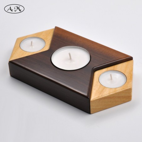 Handmade candle holder manufactured from natural mansonia and koto woods. Varnished finish.