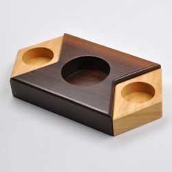 Design consisting of two rhombuses made of koto wood, measuring approximately 110x61x25mm each, and a rectangular piece with a hole to fit the rhombuses, made of mansonia wood, with approximate measurements of 146x110x30mm. All pieces are individual.