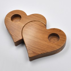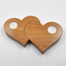 Candle holder in the shape of two nested hearts. Made of natural oak wood.