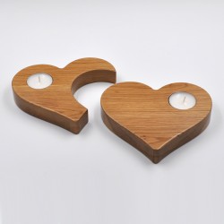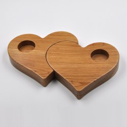 Handmade candle holder manufactured with natural oak wood. Design of two nested hearts. Varnished finish.