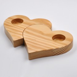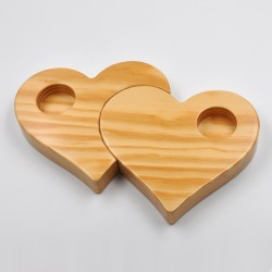 Candle holder in the shape of two nested hearts. Made of natural pine wood.
