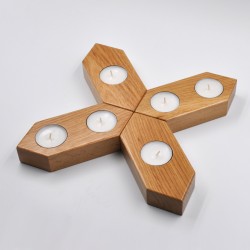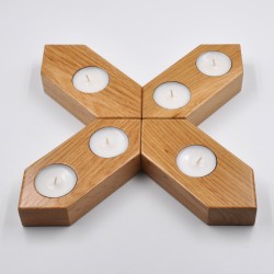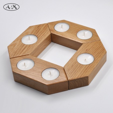 Handmade candle holder manufactured with natural oak wood. Varnished finish.