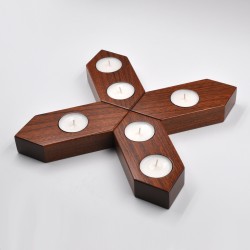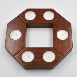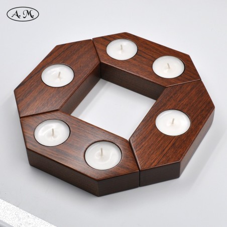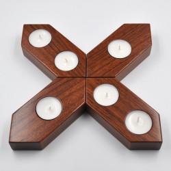 Handmade candle holder manufactured with natural sapele wood. Varnished finish.