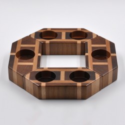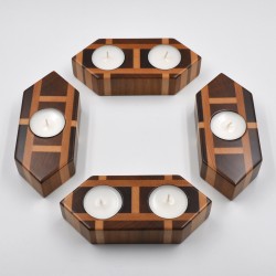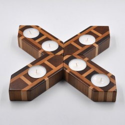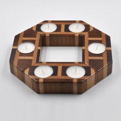 Handmade candle holder manufactured with natural mansonia and beech wood end-grain. Varnished finish.