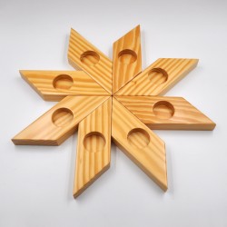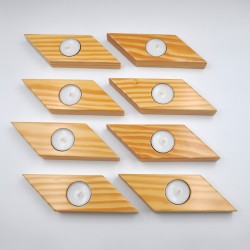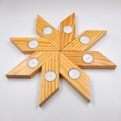 Handmade candle holder manufactured with natural pine wood. Varnished finish.