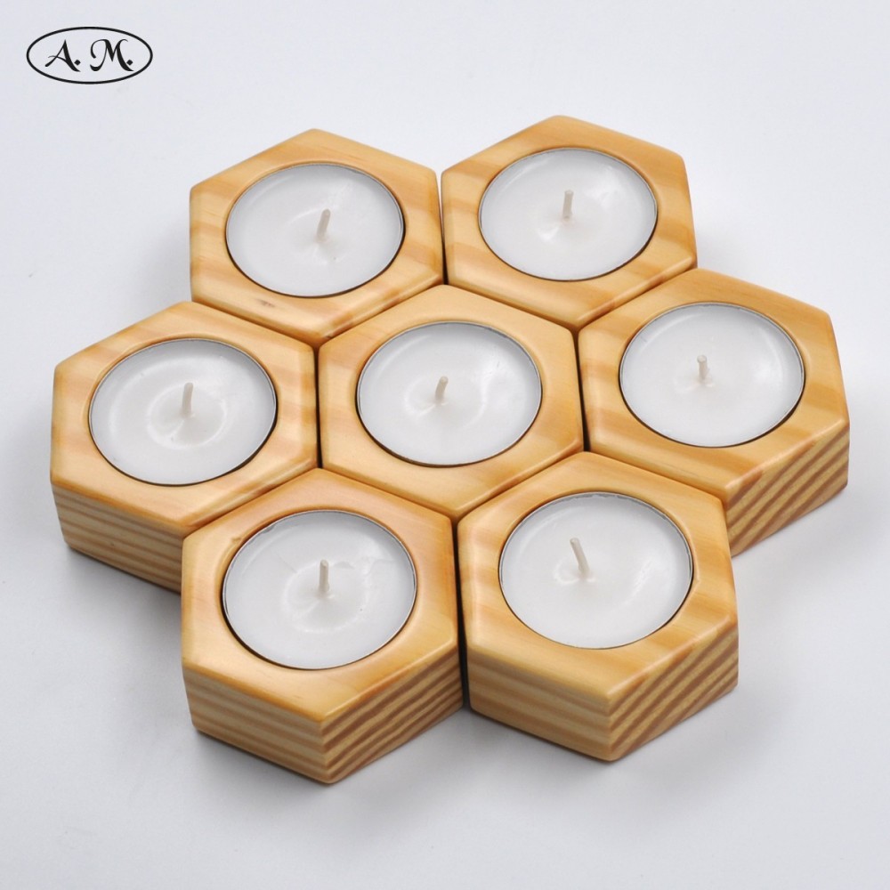 Candle holder made of natural pine wood.