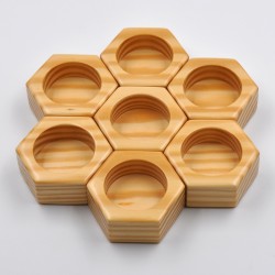 It consists of seven independent pieces in the shape of a hexagon, which when combined form a honeycomb.