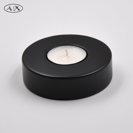 Candle holder with a round shape with 90mm in diameter. Made of fiber board, with lacquered finish.