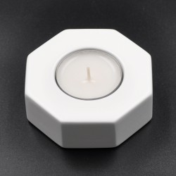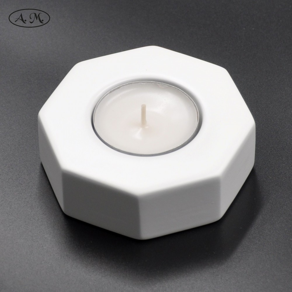 75mm wide octagon shaped candle holder. Made of fiber board, with lacquered finish.