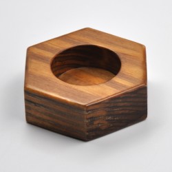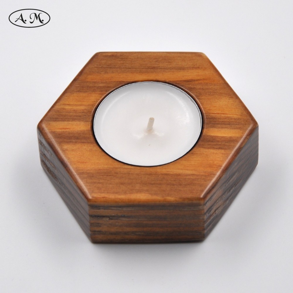 80mm wide hexagon shaped candle holder. Made of natural pine wood stained in walnut color.