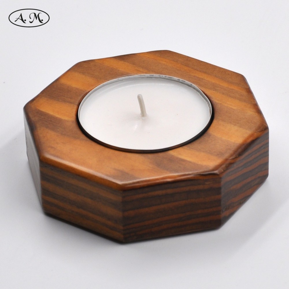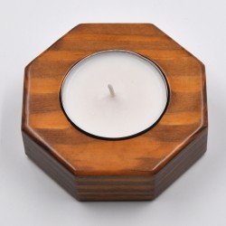 100mm wide octagon shaped candle holder. Made of natural pine wood stained in walnut color.
