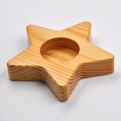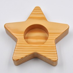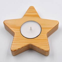 150mm wide 5-pointed star shaped candle holder. Made of natural pine wood.