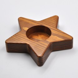 150mm wide 5-pointed star shaped candle holder. Made of natural pine wood stained in walnut color.