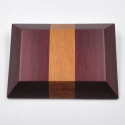 Rectangular shaped catch-all tray. Made of natural purple heart and cherry wood.