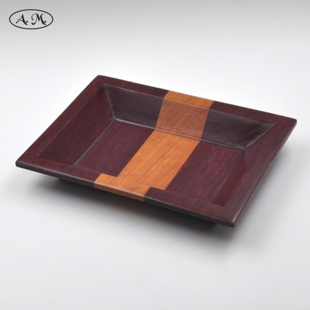 Catch-all tray made by hand in natural purple heart and cherry wood. Rectangular design. Varnished finish.