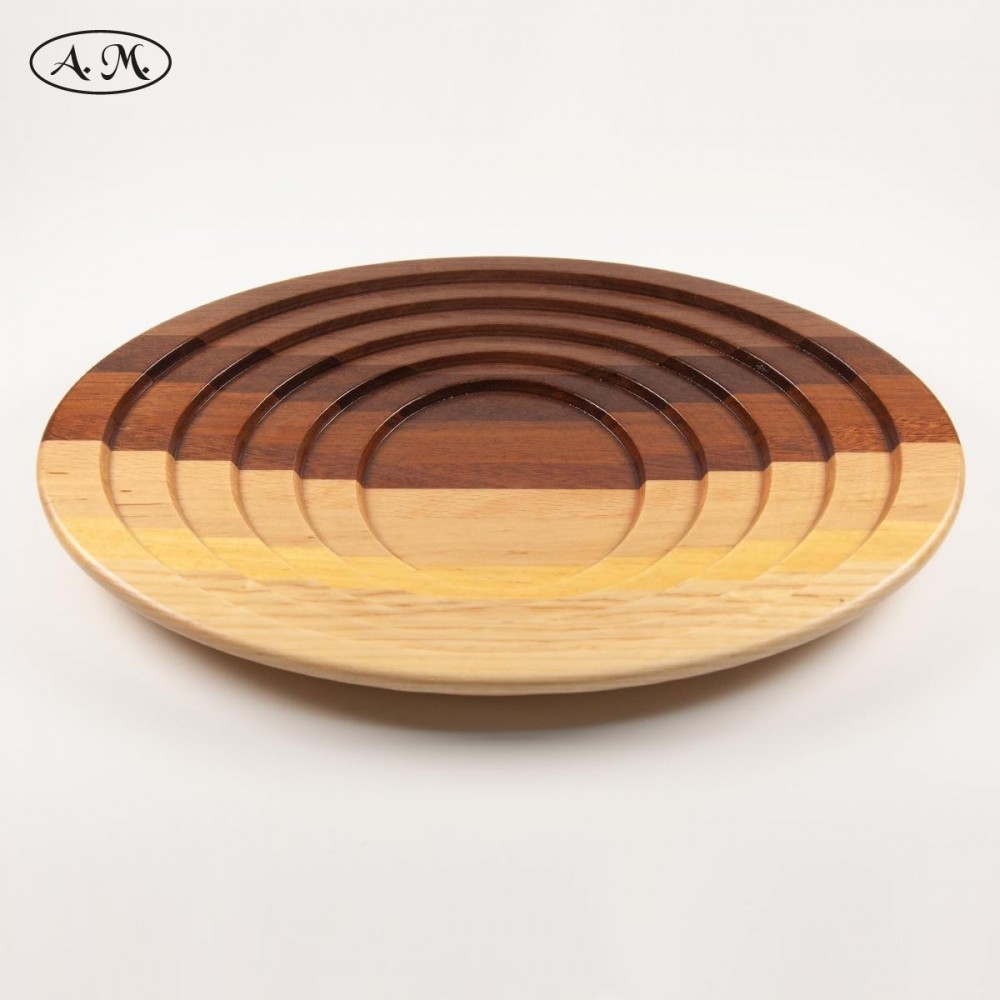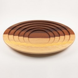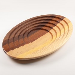 Catch-all tray made by hand in natural ash, koto, birch, beech, sapele, iroko, dibetou and mansonia wood. Oval shape with Tessellation design. Varnished finish.