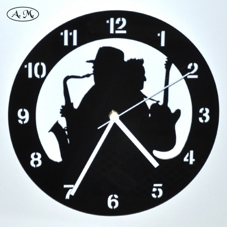 Jazz musicians wall clock. Made of acrylic. in 28cm diameter