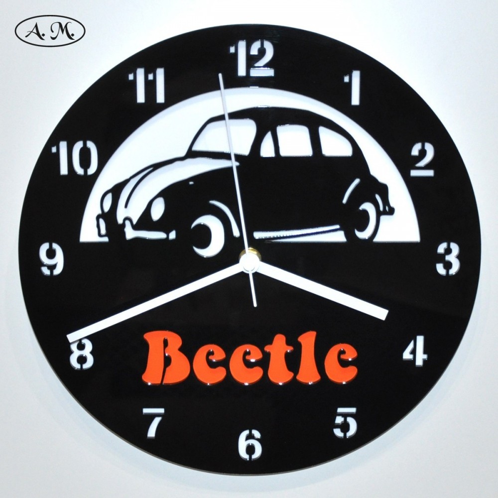 Beetle car themed wall clock. Made of acrylic. in 28cm diameter