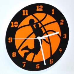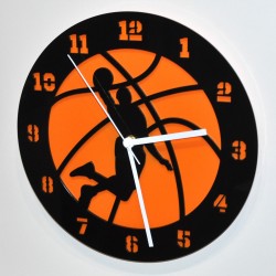 Wall clock with a design inspired in the basketball. Made of acrylic and polypropylene. in 28cm diameter