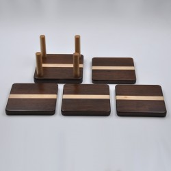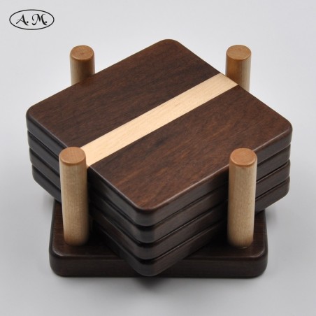 With included support to store the coasters stacked, made in the same woods and with the same pattern, and with maple rods.