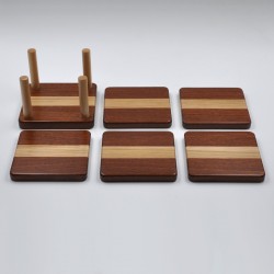 With included support to store the coasters stacked, made in the same woods and with the same pattern, and with maple rods.