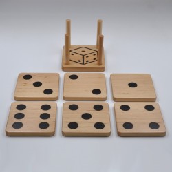 Coasters with the sides of a dice design, made of natural birch wood and epoxy resin.