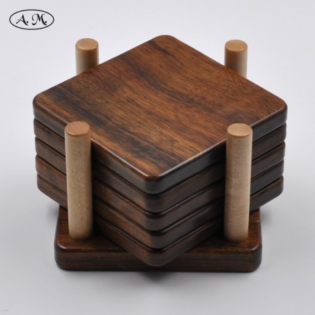 With included support to store the coasters stacked, made in the same wood and with maple rods.