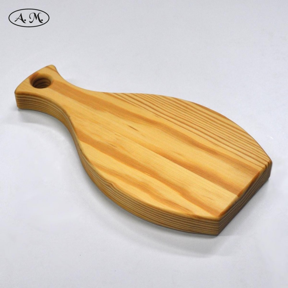 Cutting board made by hand with natural pine wood. Edge-grain design. Finished with natural mineral oil and our preparation with beeswax. Completely flat on both sides.