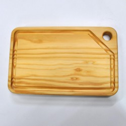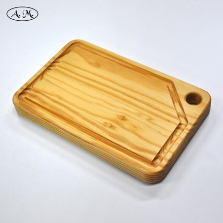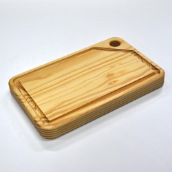 Cutting board made by hand with natural pine wood. Edge-grain design. Finished with natural mineral oil and our preparation with beeswax. On one side it is completely flat, and on the other it has a juice groove.