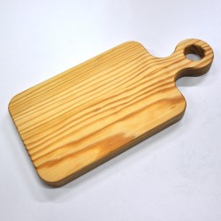Cutting board made by hand with natural pine wood. Edge-grain design. Finished with natural mineral oil and our preparation with beeswax. On one side it is completely flat, and on the other it has a juice groove.