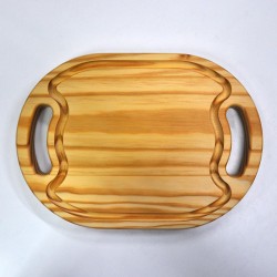 Cutting board made by hand with natural pine wood. Edge-grain design. Finished with natural mineral oil and our preparation with beeswax. On one side it is completely flat, and on the other it has a juice groove.
