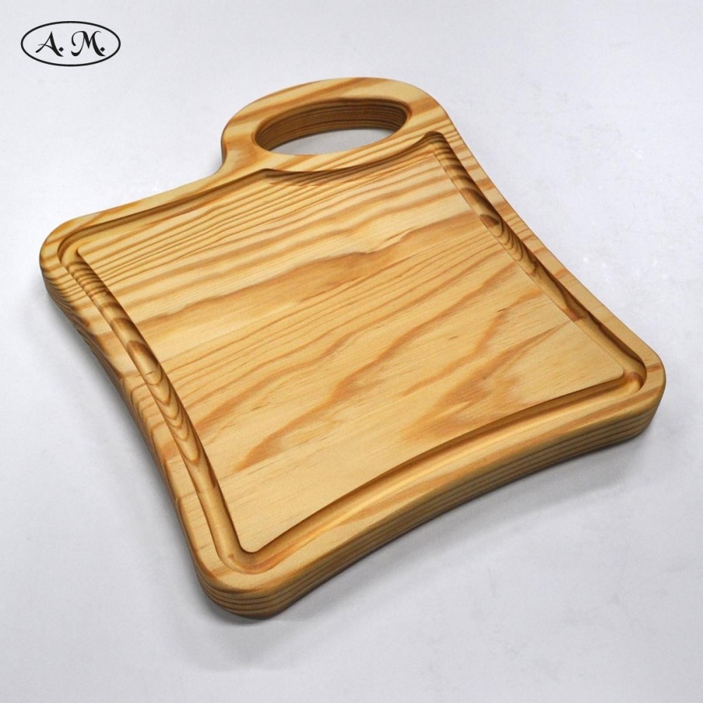 Cutting board made with natural pine wood.