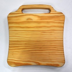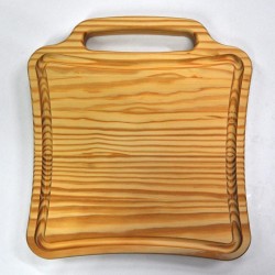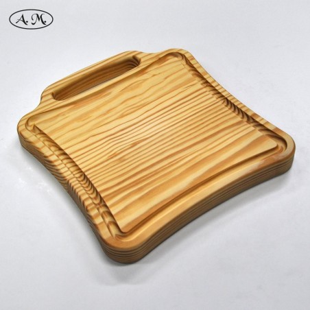 Cutting board made by hand with natural pine wood. Edge-grain design. Finished with natural mineral oil and our preparation with beeswax. On one side it is completely flat, and on the other it has a juice groove.