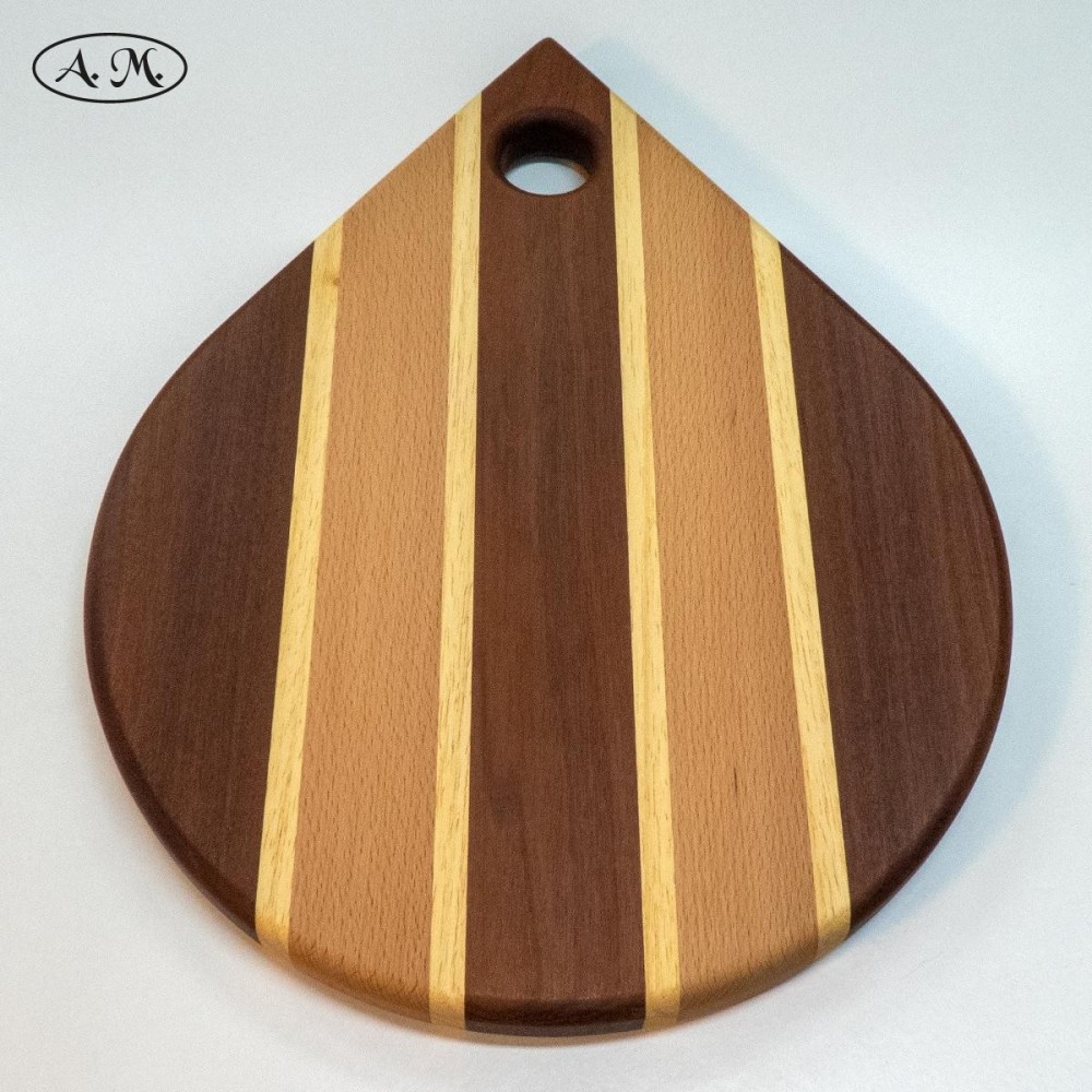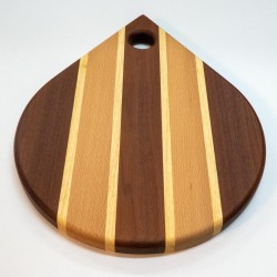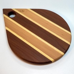 Tear drop shaped cutting board made with natural kotibe, beech and koto wood.