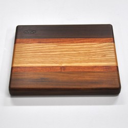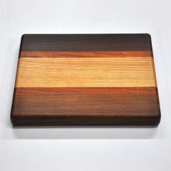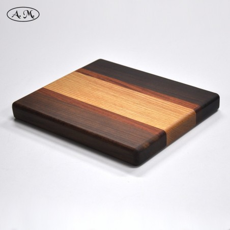Cutting board made with natural mansonia, bubinga and ash wood.