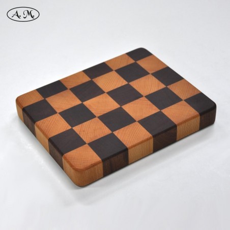 Cutting board made by hand with natural beech and kotibe wood. End-grain design. Finished with natural mineral oil and our preparation with beeswax.
