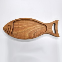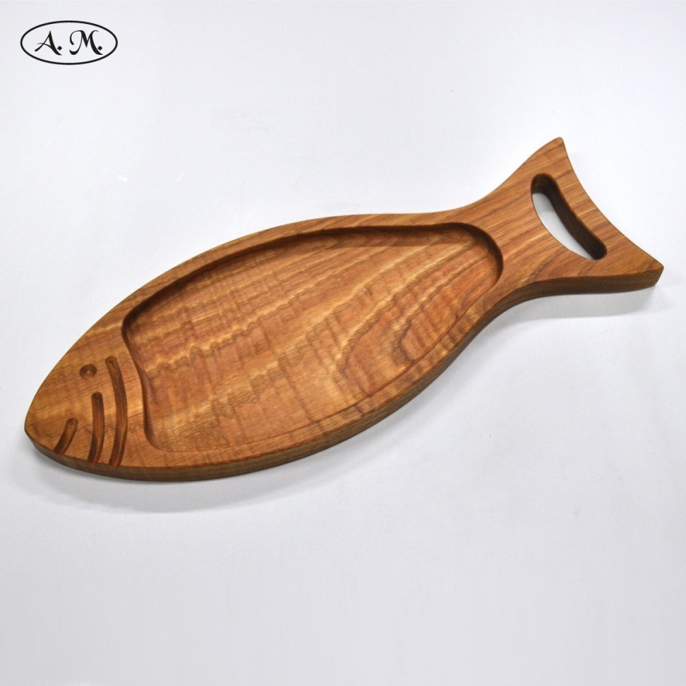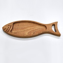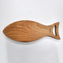 Cutting and serving board made with natural chestnut wood.